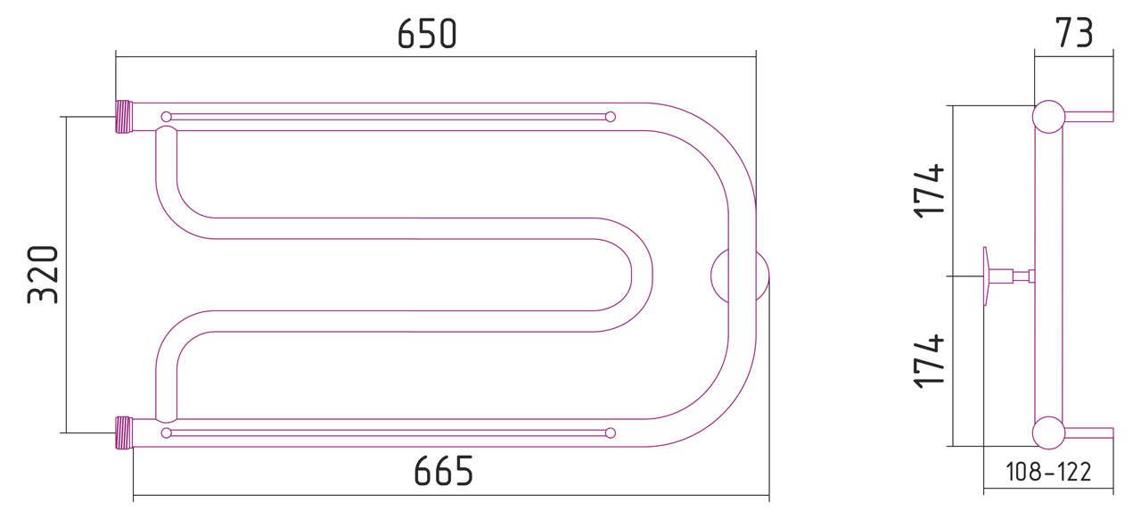 Полотенцесушитель водяной Стилье ДУЭТ 00015-3265 320х650