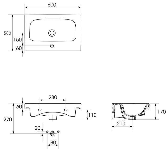 —Раковина Cersanit MODUO SLIM 60