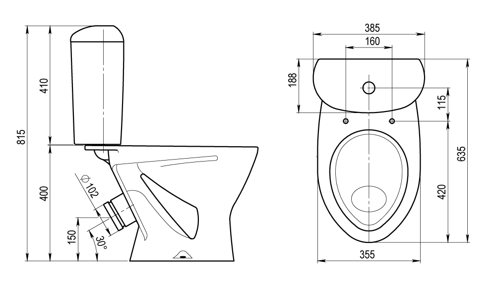 снизу бачка |