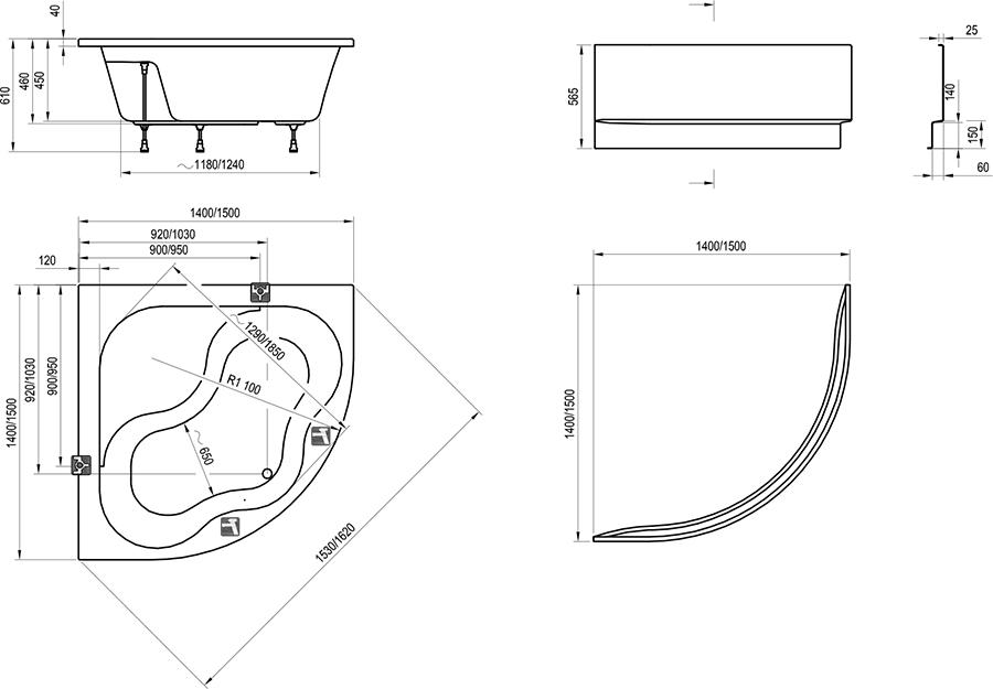 —Ванна акриловая угл. Ravak GENTIANA CG01000000 150*150*61 см.